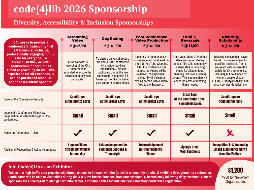 Sponsor Code4Lib 2026Sponsorship Opportunities